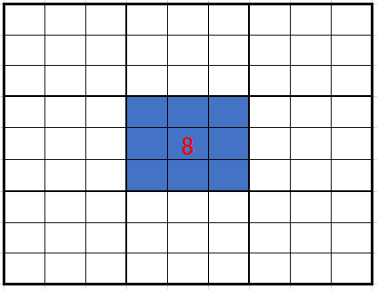 当然、8は真ん中のブロックの白いところに入ることになります。ですから、