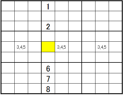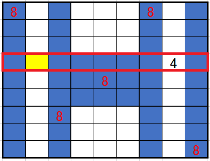 なら、黄色のところに8が入ることが確定します。ライン排除とライン反照排除を考えればよいですね。