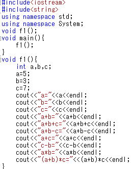 cout<<"(a+b)*c="<<(a+b)*c<<endl;