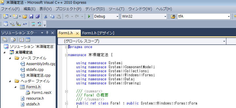 すると、コードがダウンロードしたダウンロードファイルForm5.hと同じになります。