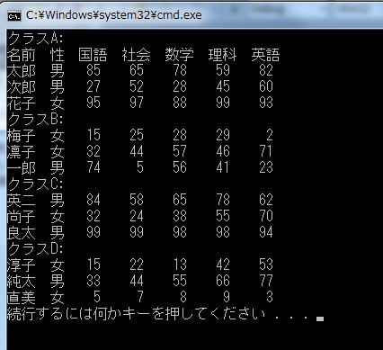 cout<<"クラスD:" <<endl;