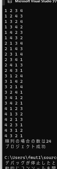 cn++; //できた順列の個数をカウント