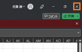の×をクリックしてエクセルを閉じてください。エクスプローラー(