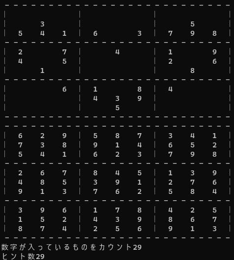 ことごとくヒント数と入っている数字の個数が一致しました。